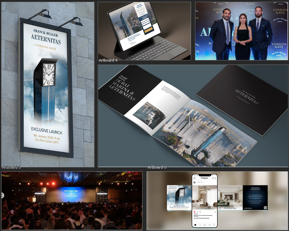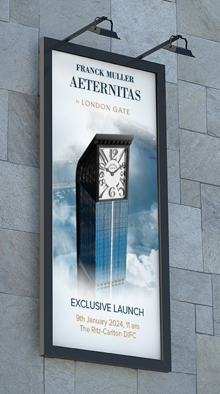 Aeternitas is the fusion of two titans: Franck Muller, with its 30 years of Swiss luxury heritage, and London Gate’s extraordinary living. Keeping both brand identities intact while leveraging their heritage for our advantage, ensuring the saleability, livability, and uniqueness of the project, was a challenge.